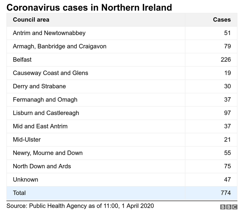 Koronawirus w Irlandii Północnej, zabił już łącznie 36 osób. Przeprowadzono do tej pory 6899 testów, z czego 774 osoby dostały pozytywny wynik.